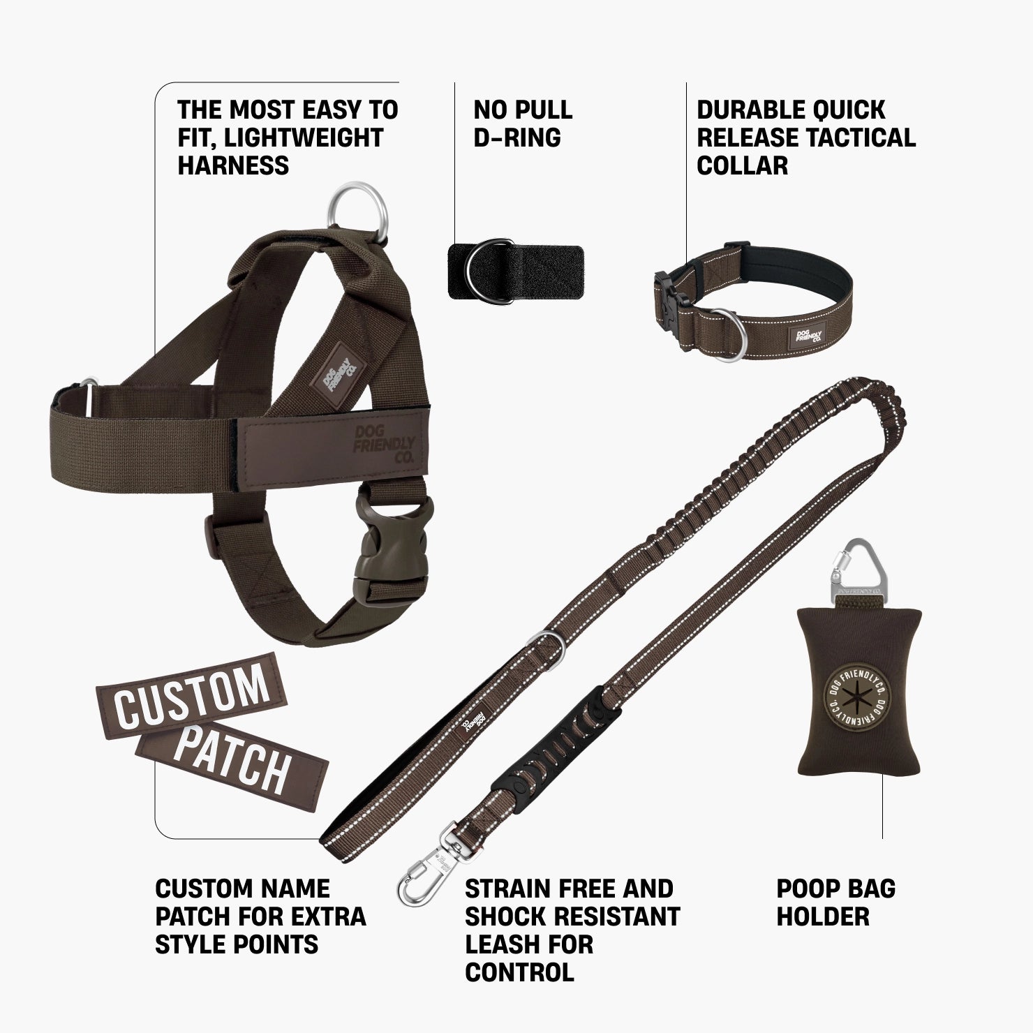 • Easily attaches to your current Dog Friendly Co. harness with minimal setup